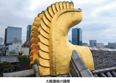 増上寺の鴟尾は銅で作られ、その大きさは高さが約2メートル40センチメートル、 重さが約1,300キログラムととても大きく、奈良・東大寺大仏殿の鴟尾に次ぐ大きさといわれております。