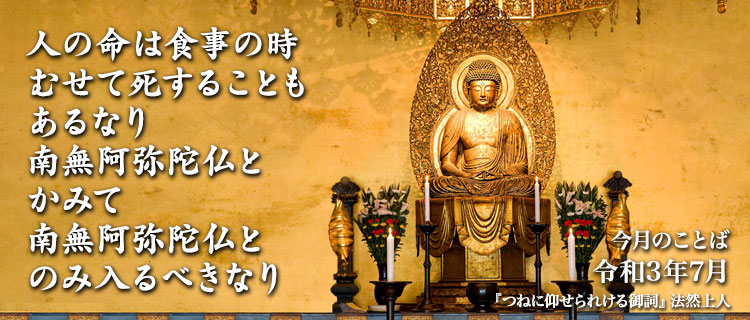 死の縁は無量と申しますが、私たちもいつどのような往生となるかもしれません。今月のことばそのままに旅立った99歳のおばあさんの枕経に出向いた時、阿弥陀様の広大な慈悲と法然上人のお言葉がとてもありがたく感じられお念仏を申させていただきました。